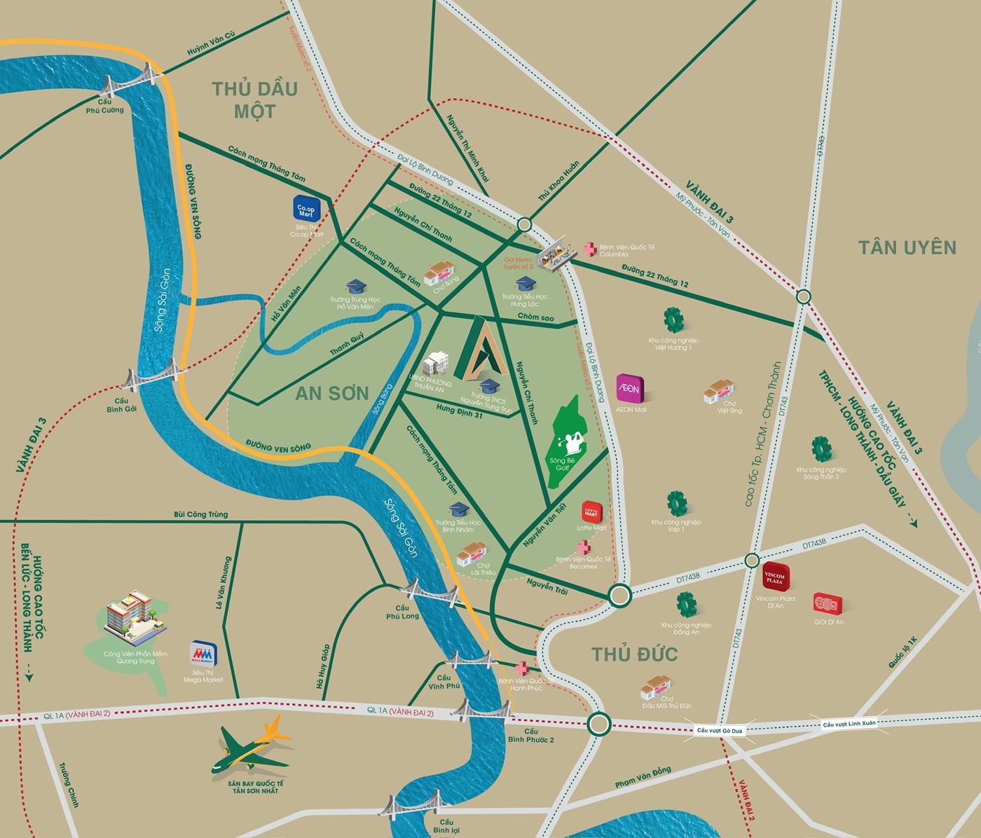 Dự án The Emerald Garden View sở hữu vị trí “vàng” ngay trung tâm phường Thuận An – cửa ngõ giao thương chiến lược giữa TP.HCM và các khu công nghiệp trọng điểm. Đây là điểm hội tụ hoàn hảo cho cả an cư và đầu tư: kết nối cực nhanh, nhu cầu thuê mạnh, biên độ tăng giá cao song hành với tốc độ đô thị hóa của khu vực.