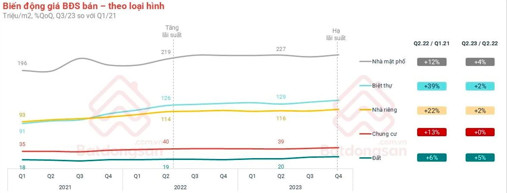 Từ quý 2/2022, giá bắt đầu bước vào chu kỳ điều chỉnh sâu, còn tâm lý thị trường rơi xuống mức thấp nhất khi 72% người tiêu dùng tham gia khảo sát lo ngại lạm phát và 75% tin rằng lãi suất sẽ tiếp tục tăng.