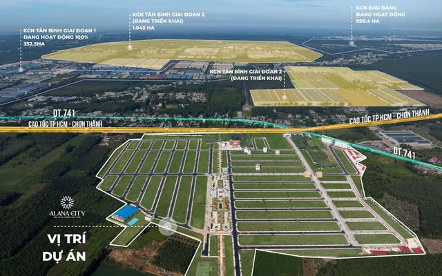 Dự án sở hữu vị trí đắc địa ngay mặt tiền ĐT741, kết nối trực tiếp với cao tốc TP.HCM – Thủ Dầu Một – Chơn Thành. Khi tuyến cao tốc này thông xe, thời gian di chuyển từ Alana City đến trung tâm thành phố chỉ còn khoảng 40 phút.
